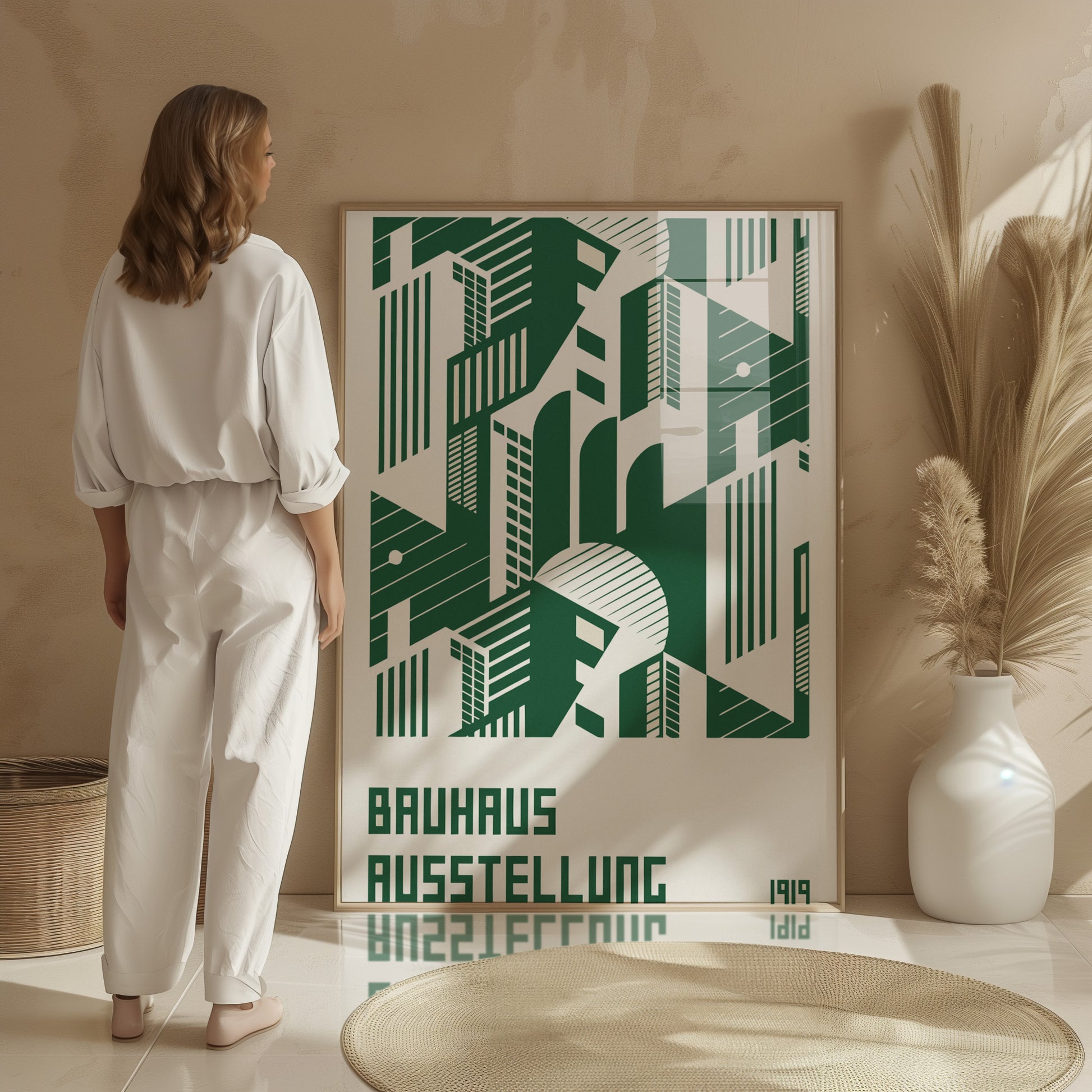 Bauhaus Exhibition Poster, Minimal Green Geometric Art Urban Area - BH Green18_005