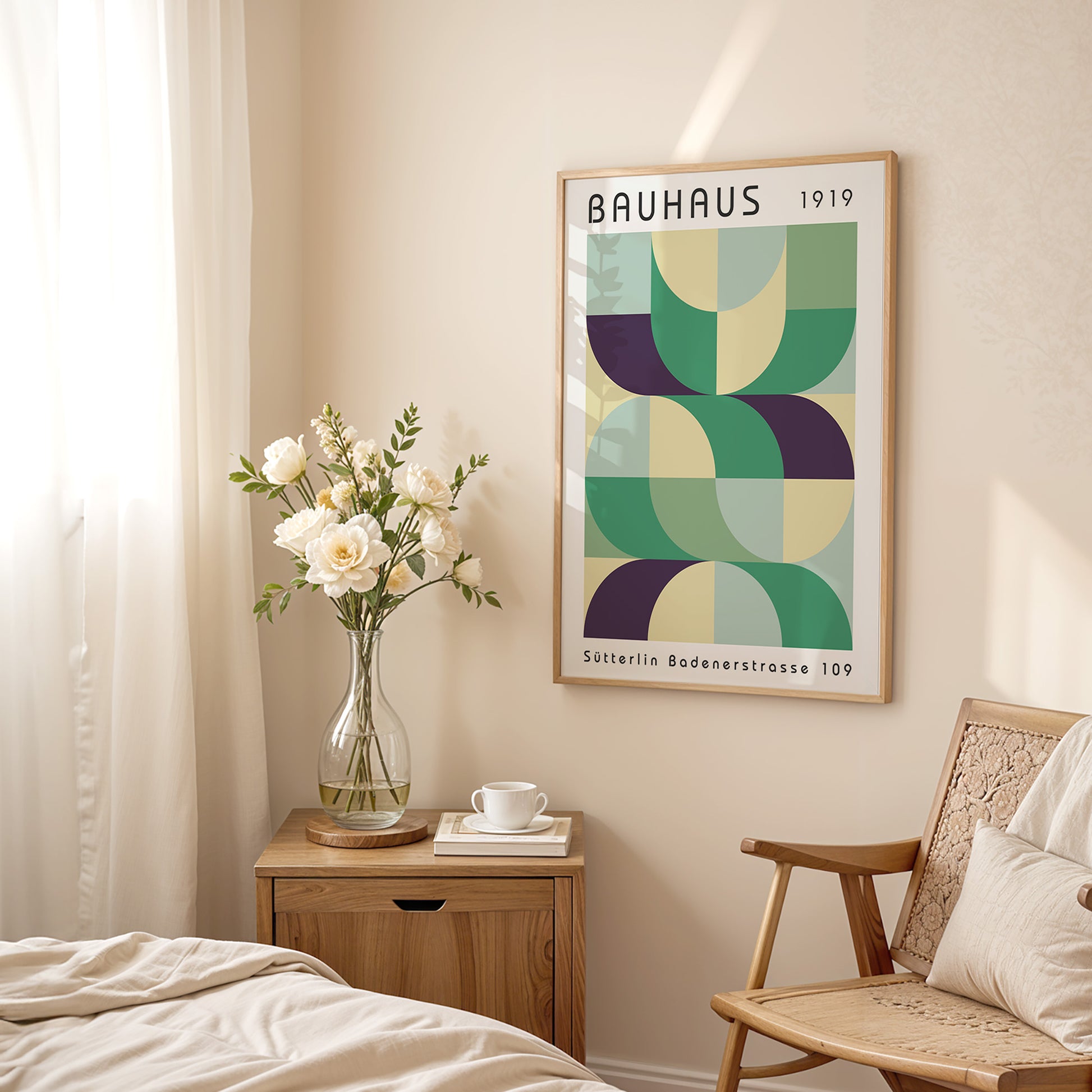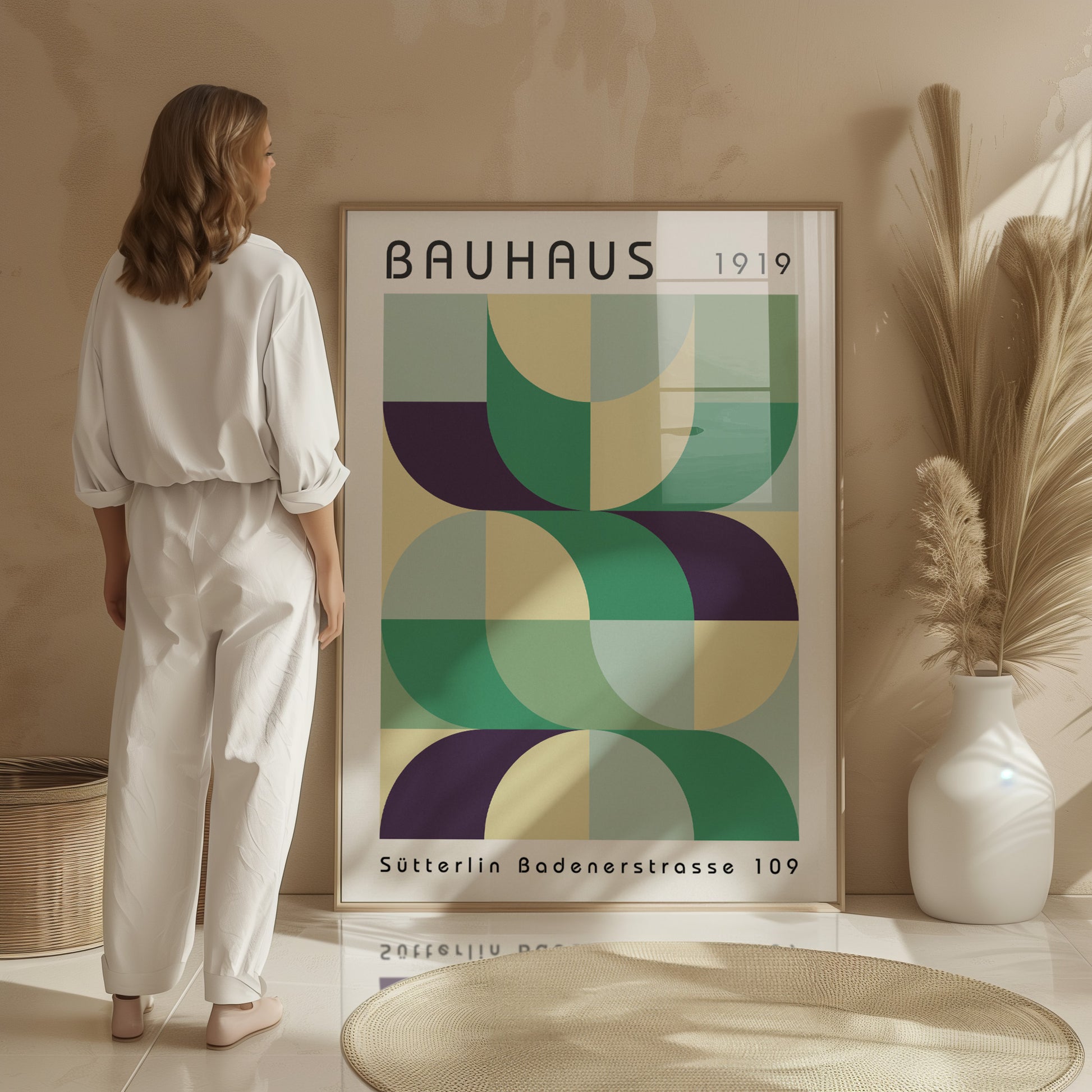 Bauhaus Style Colorful Print: Abstract Gallery Wall Art - BH Green18_014